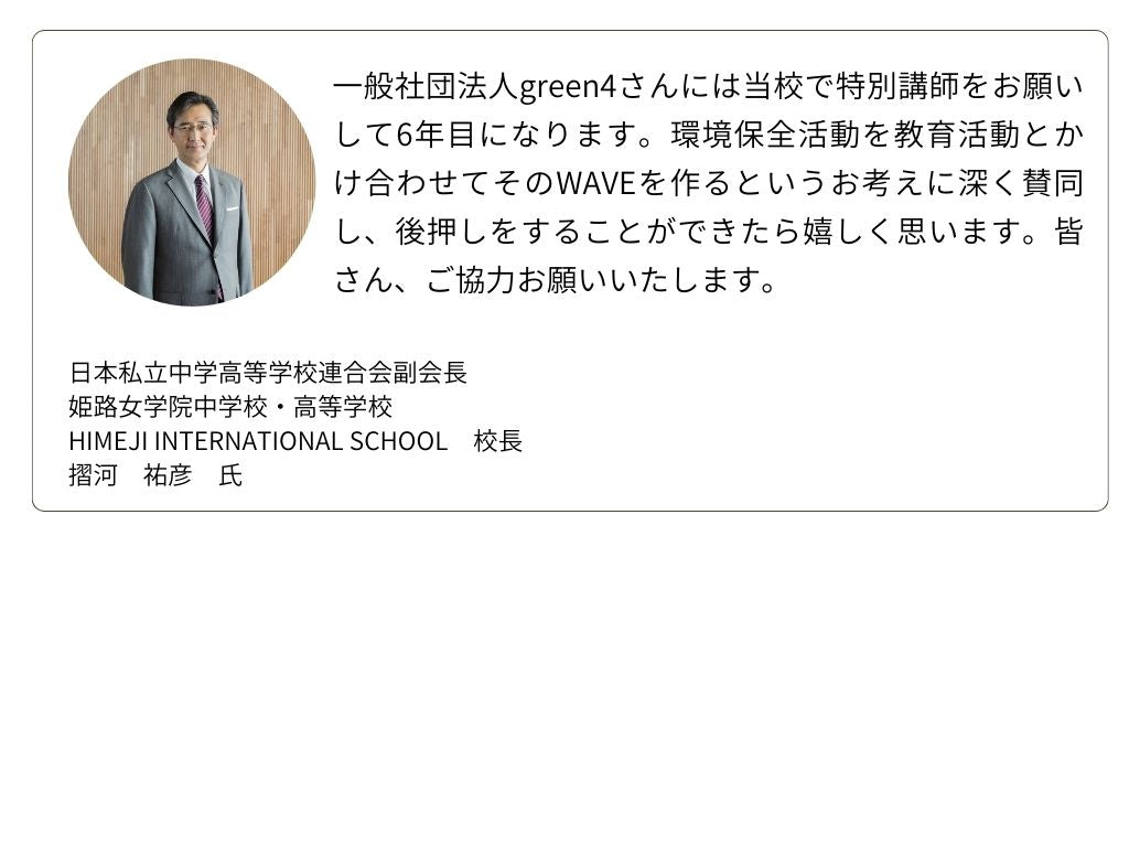 一般社団法人green4(グリーンフォー)は、教育を軸とした環境保全活動を行い、全国で「循環できる森づくり」を推進する団体です。