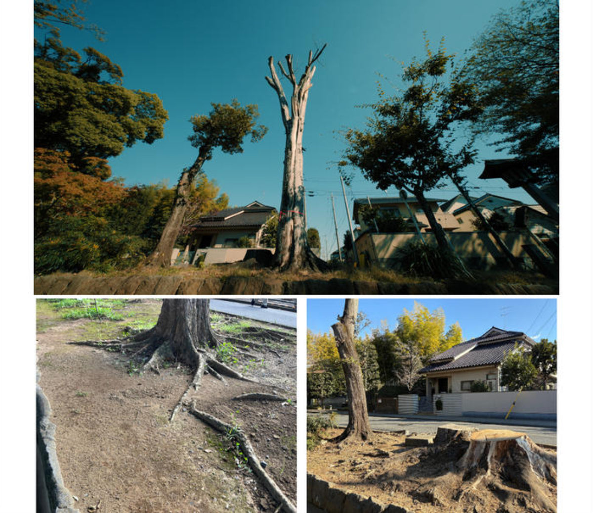 このままでは太い枝を参拝者の頭上に落とし、倒木する恐れがあります。